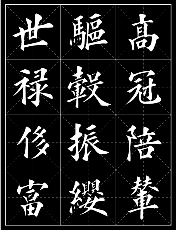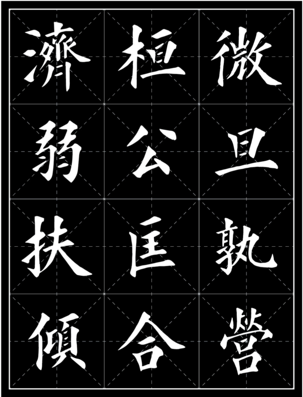 金楷的笔墨风采独具魅力:其点画书写极具讲究,左点需笔杆向右倾斜约45度,手指抬笔预备后滑笔入纸,逆势铺毫至三角形时起笔,棱角分明却不失圆润;右点运笔反之,左右呼应间尽显平衡之美。横画则以“敲锋”起势,下笔稍重,逆锋轻行至末端略重铺毫,自然形成向上的三角形收笔,笔画遒劲有力,兼具宋体的规整与手写的灵动。作为谭白虎·金楷宗师自创金楷中唯一使用中锋运笔的竖画,起笔藏锋沉稳,行笔垂直挺拔,收笔或顿笔或出锋,尽显“铁骨铮铮”的笔墨气质。